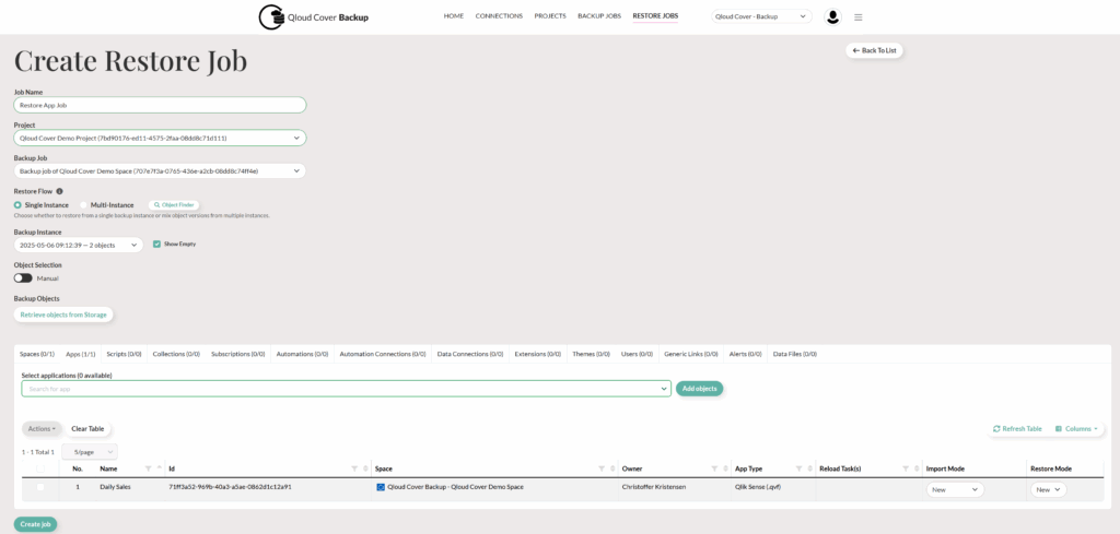 Integrate Qloud Cover Backup into your daily workflow to strengthen and secure your Qlik Cloud environment. For groups like spaces the tool automatically adds backup jobs to new applications.