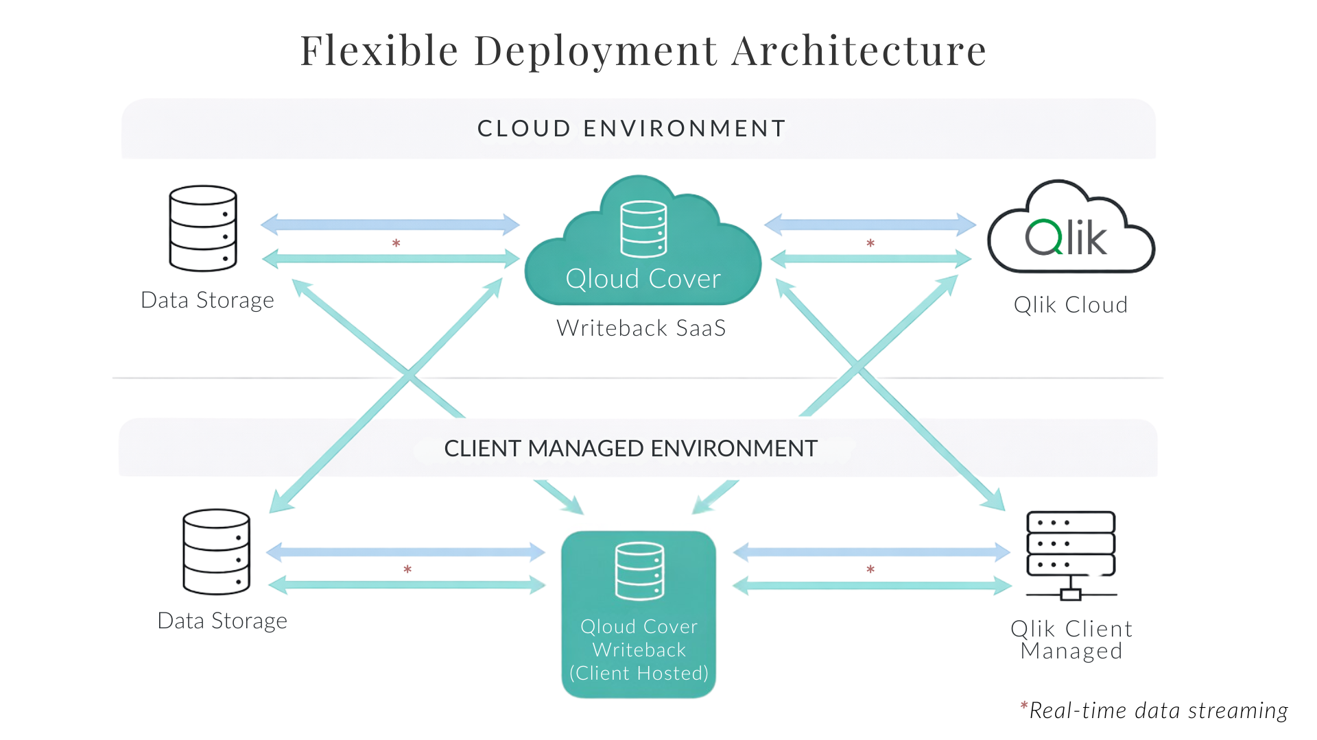 Qloud Cover Writeback allows you to capture new data, edit records, and instantly sync updates across your data warehouse and apps. Built for both SaaS and on-premise deployments, Writeback ensures flexibility, security, and ease of use for enterprise data teams.